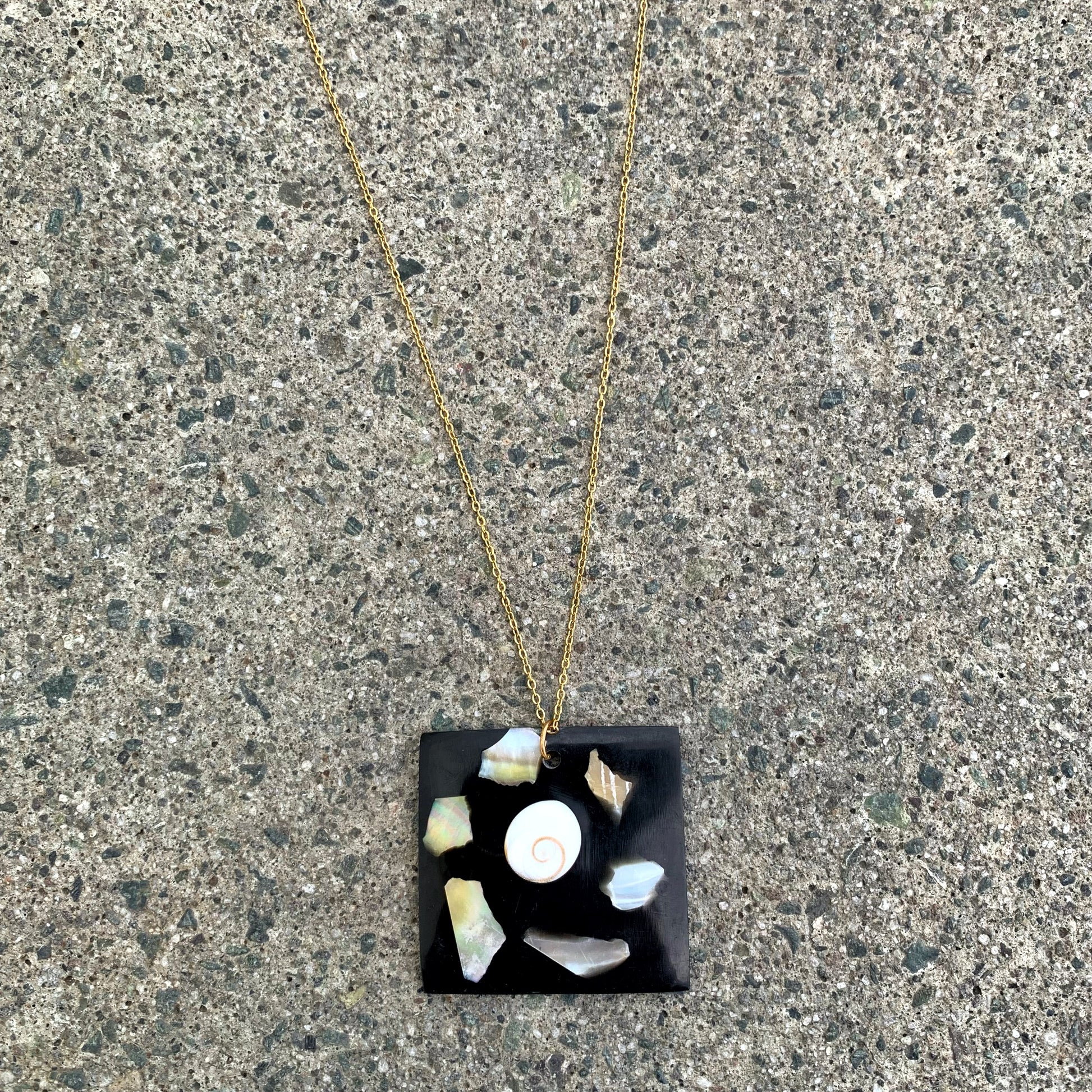 - Material: Resin pendant, gold plated stainless steel chain