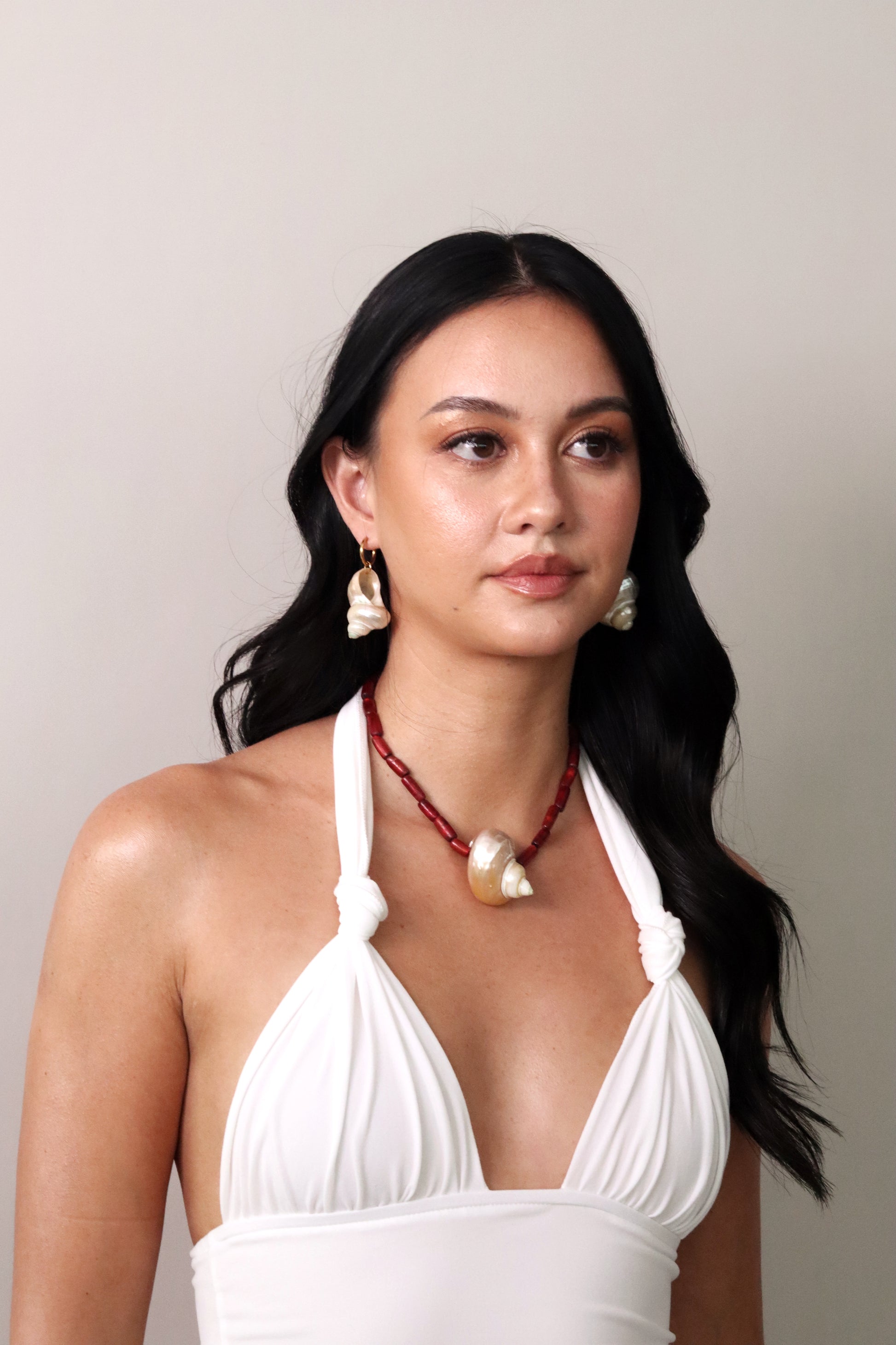 - Material: pearlized seashells, gold plated stainless steel hoops